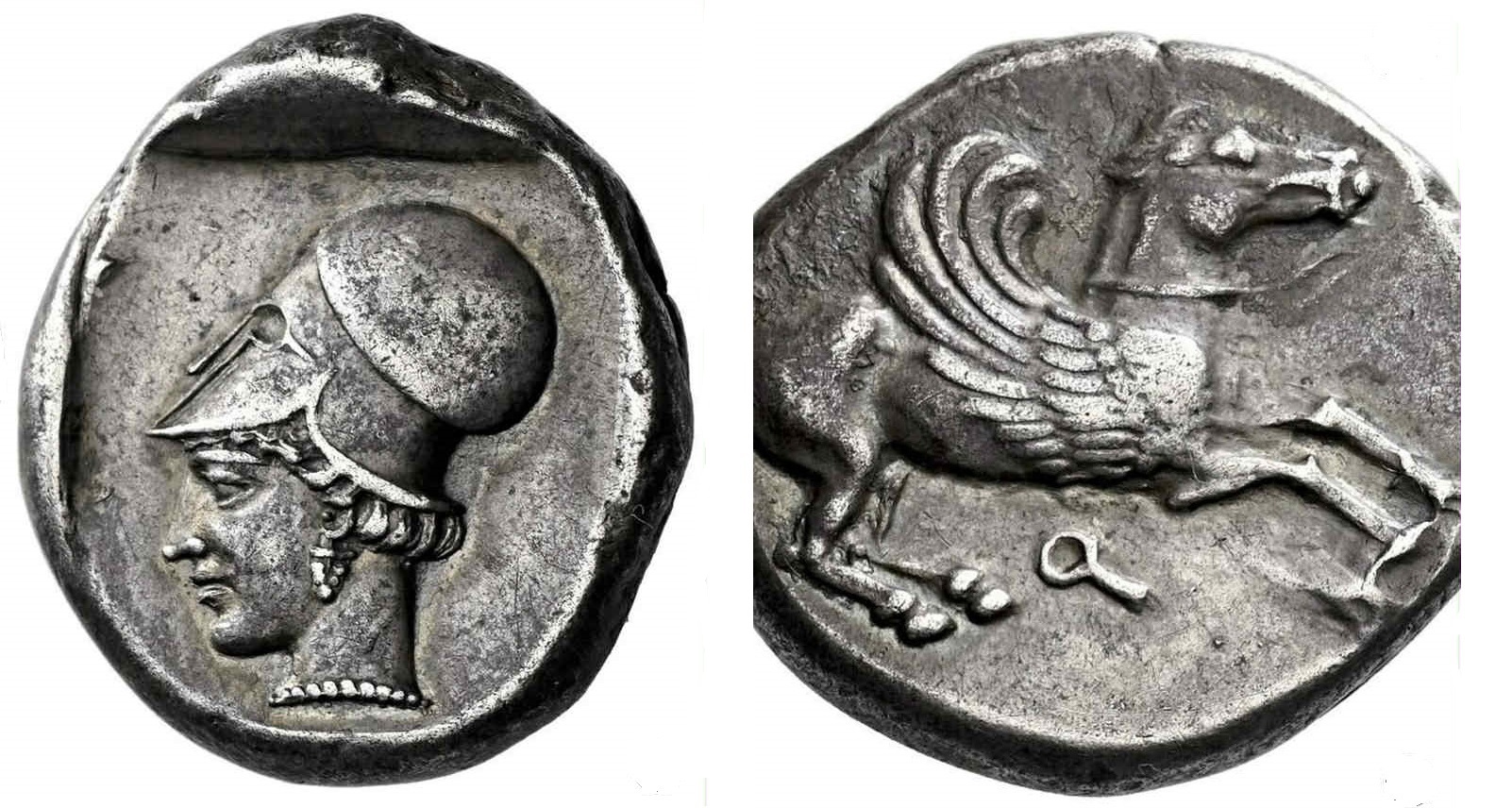 Kованицa, ''Ѕена од Куѕе'', со шлемот од Куѕе (Кај Ѕе) многу ретка кованица, ликот лево, е евидентно жена со бела физиономија), не ''Коринт'' зошто е погрешно прочитано. Значи градот бил грд држава на беласти - бели.