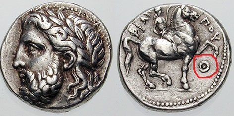 Kованицa, многу ретки, многу важни, кога на македонскиот престол во Македонија бил василеос Македонон Филипој со буквата: '' Ѕ '' - круг со точка или ''Ѕе''.